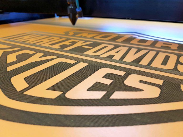 Lasergraveren is een snelle, flexibele manier om diverse materialen, waaronder HPL, te kunnen graveren. De laserbundel wordt door middel van scanners razendsnel over het te graveren oppervlak bewogen. Door de absorptie van het laserlicht vindt er een onomkeerbare verandering (pigmentverandering, “verbranding”, texturering) van het graveeroppervlak plaats. Daardoor wordt de toplaag van het HPL weggehaald en komt de kern van het HPL naar boven. Door het lasergraveren kan je foto’s en logo’s mooi en nauwkeurig in het HPL lasergraveren.